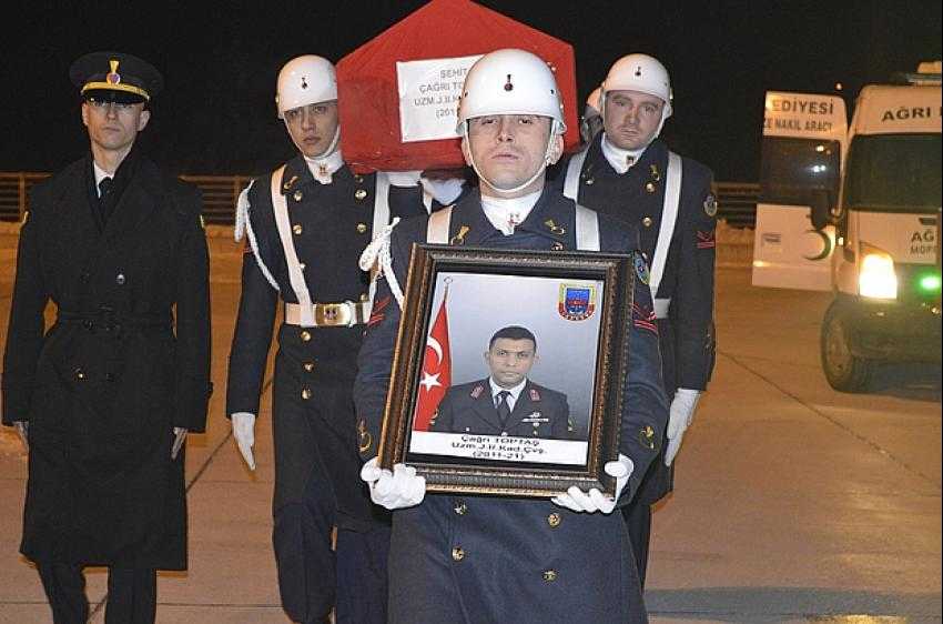 Ağrı’nın Diyadin İlçesine Bağlı Ulukent Köyü Jandarma Karakolunda görevi başında rahatsızlanarak, şehit olan Jandarma Uzman Çavuş Çağrı Toptaş’ın naaşı