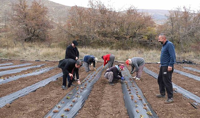 Erzincan'ın Merkez ilçesine bağlı Tatlısu köyünde başlatılan çilek yetiştiriciliği projesiyle 20 dönüm alana 100 bin fide dikildi.