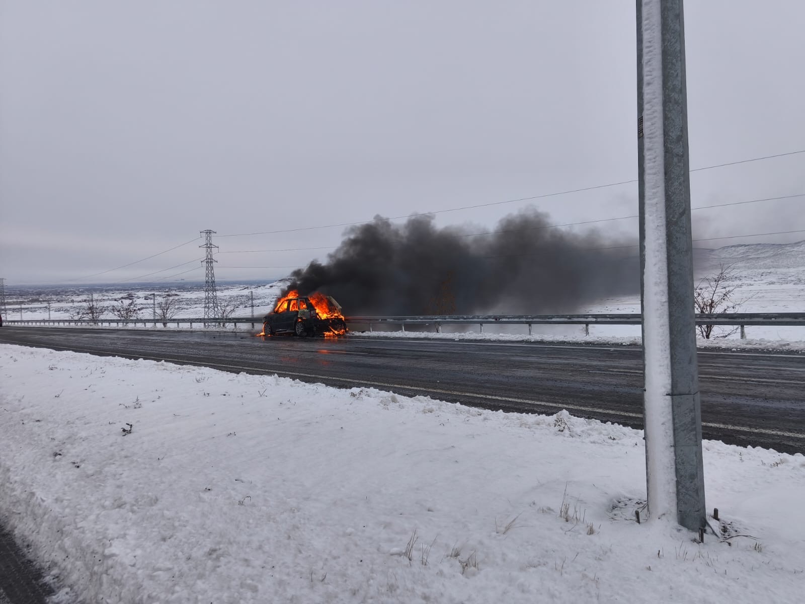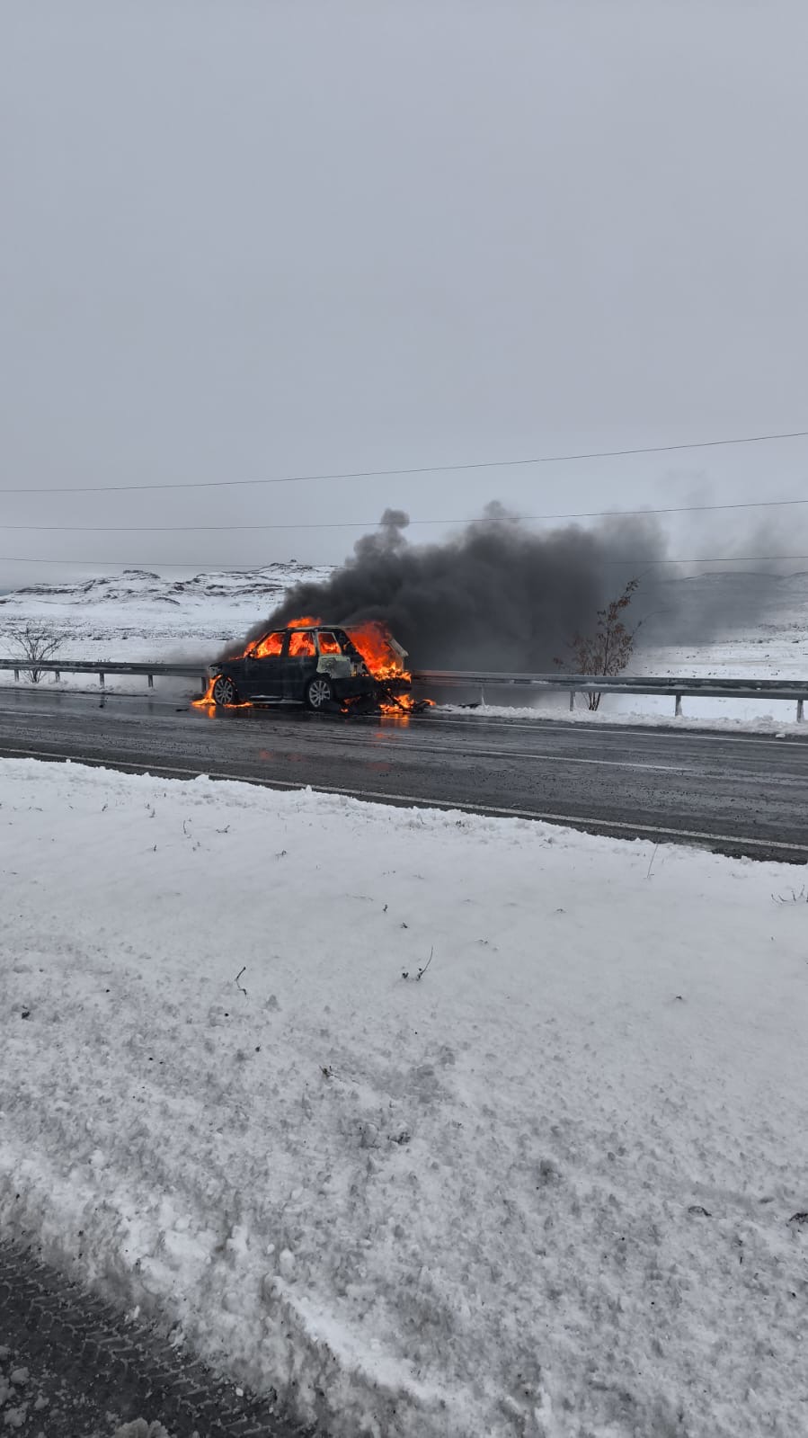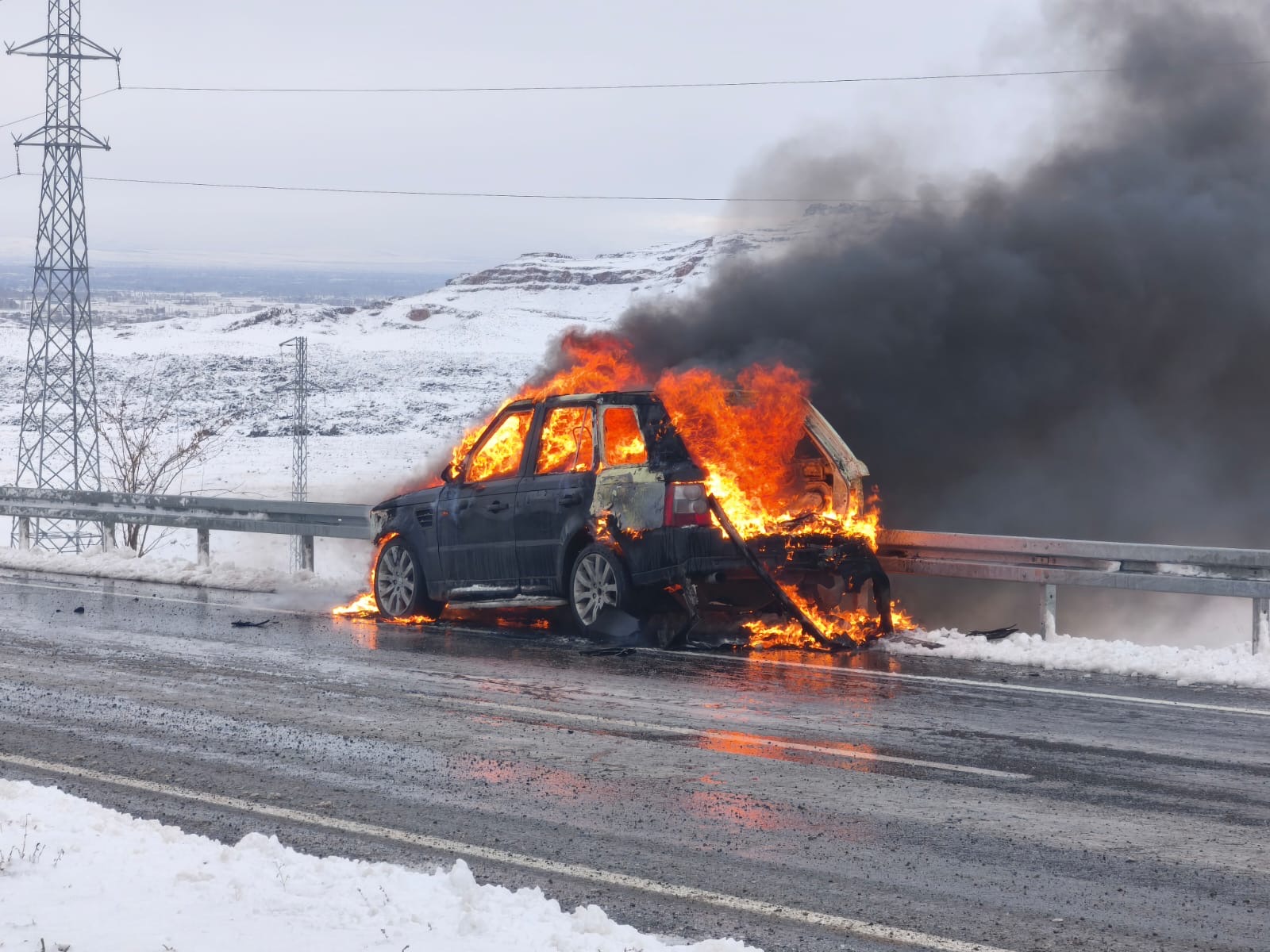 Suveren istikametinden Iğdır yönüne seyir halinde olan özel bir otomobil, seyir halindeyken henüz belirlenemeyen bir nedenle motor kısmından alev aldı. kısa sürede büyüyen yangın, aracı tamamen sararken çevrede büyük panik yaşandı.