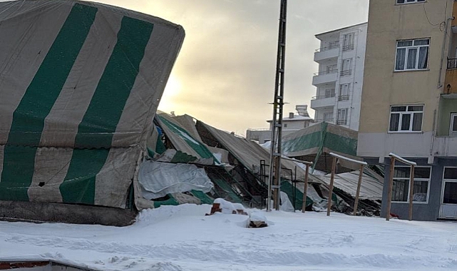 Deniz Düğün Salonu’nda yoğun kar yağışı nedeniyle çatı çökmesi meydana geldi. Birçok çiftin en mutlu günlerine ev sahipliği yapan salonda yaşanan olay, kısa süreli paniğe yol açtı.