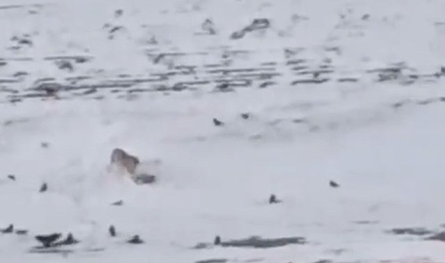 Ağrı'nın Diyadin ilçesinde aç kalan kurt ilçe merkezine kadar inerek bir köpeği parçalayarak yedi.
