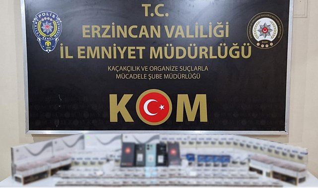 Erzincan İl Emniyet Müdürlüğü Kaçakçılık ve Organize Suçlarla Mücadele Şube Müdürlüğü ekiplerince, kaçak sigara ile yurt dışı (kaçak) telefon satışı yapabilecek iş yeri ve şahıslara yönelik yapılan çalışmalarda 60 bin değerinde kaçak telefon ve sigara ele geçirildi.