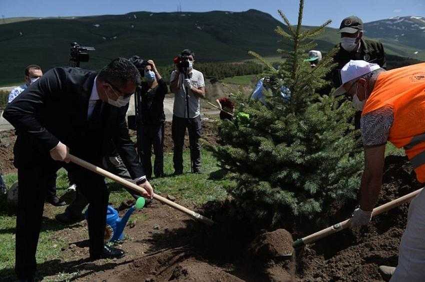 Erzurum Valiliği ve Orman Bölge Müdürlüğü birlikteliği ile sağlık çalışanları adına hatıra ormanı için ilk ağaçlar dikildi.