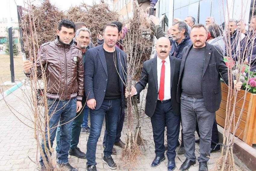 Selim Belediye Başkanlığı önünde vatandaşlara meyve ağaçlarını veren Başkan Coşkun Altun, Selim Ovası’nın meyve ağaçlarıyla hayata bulacağını belirtti.
