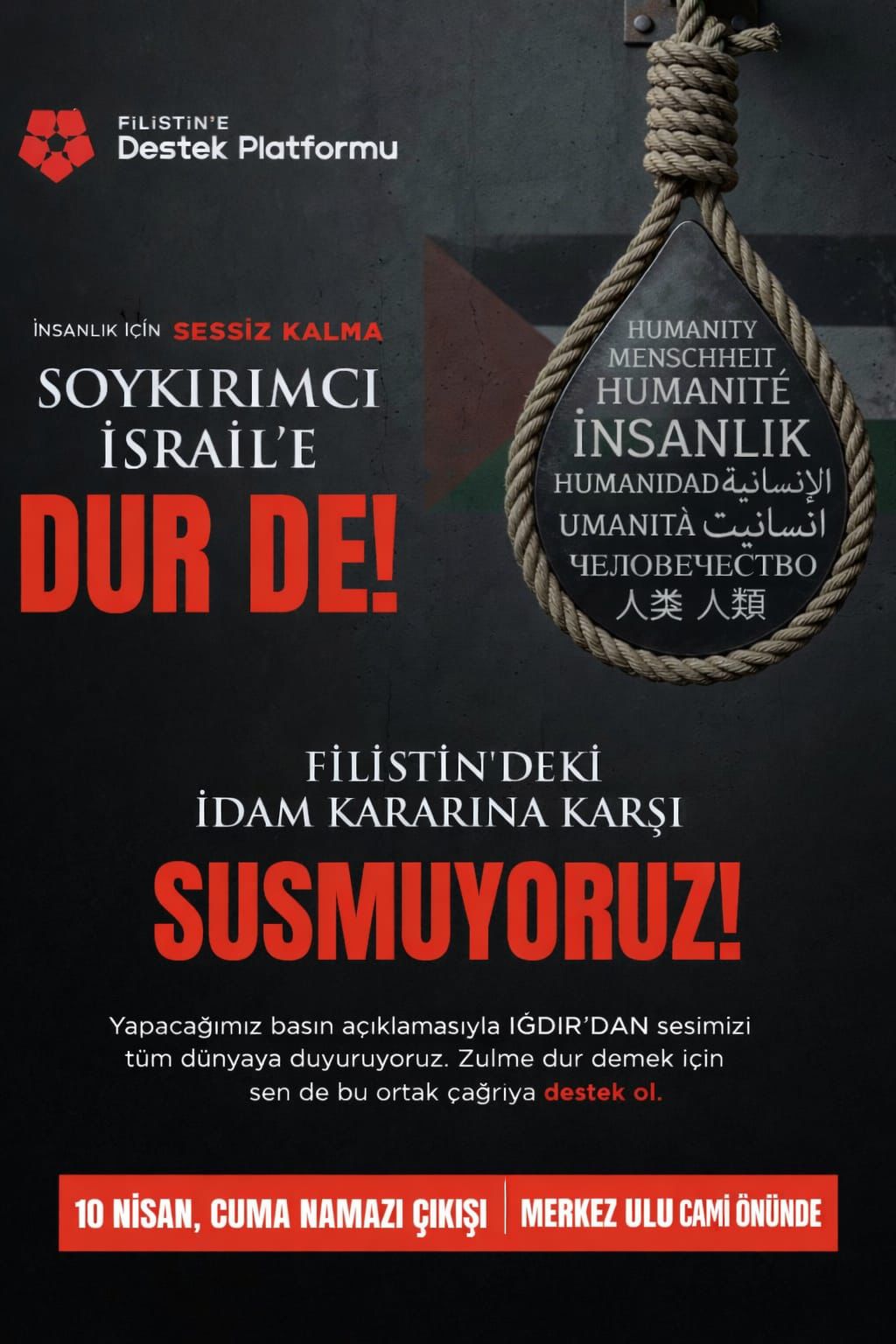 IĞDIR’DA FİLİSTİN İÇİN SES YÜKSELDİ: “ZULME KARŞI SUSMAYACAĞIZ”