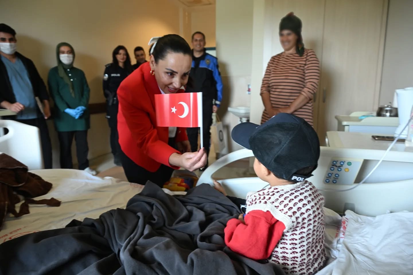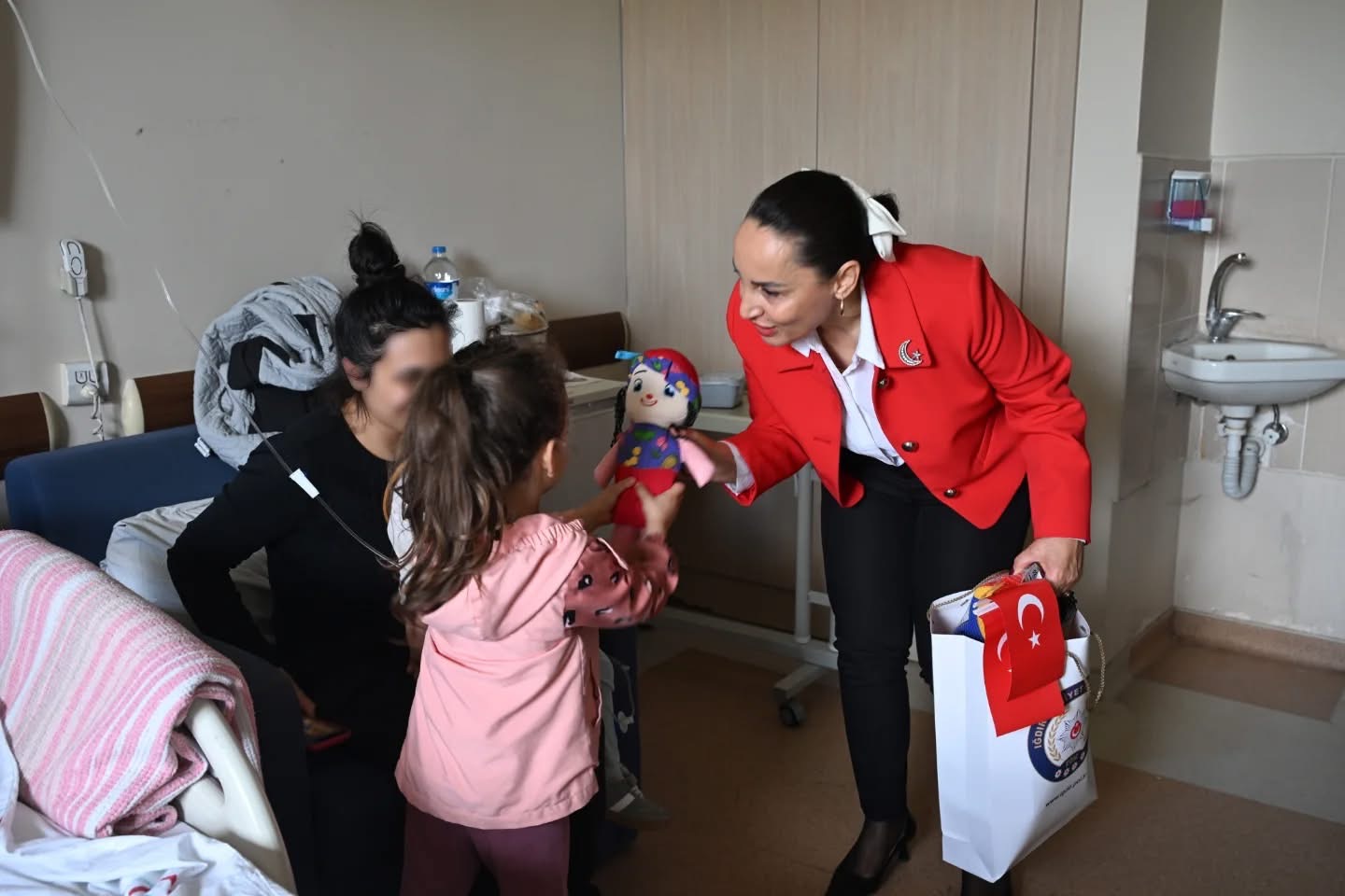 Aynı gün bir başka anlamlı ziyaret de hastanede gerçekleşti. polis Eşleri Derneği Iğdır İl Başkanı Aysun Turgay ve emniyet personeli, Iğdır Dr. Nevruz Erez Devlet Hastanesi çocuk servisindeki minikleri ziyaret etti.