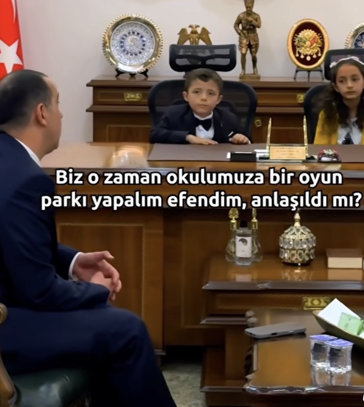 Çocukları makam koltuğuna oturtan Vali Taşolar, onların talimatlarını bizzat dinledi. Park ve okul ihtiyaçları, Aziz Gün ile birlikte tek tek not alındı. Küçük yüreklerin büyük hayalleri devletin en üst makamında karşılık buldu. O anlarda çocukların mutluluğu ise gözlerinden okundu.