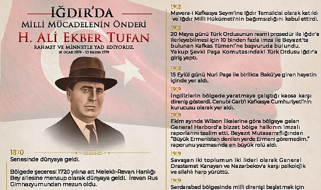Iğdır’ın düşman işgalinden kurtuluşunun 105’inci yıl dönümü vesilesiyle, şehrin özgürlüğü için verdiği mücadelede önemli bir lider olan H. Ali Ekber Tufan, rahmet ve minnetle anılıyor.