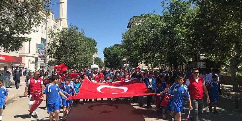 15-21 Mayıs tarihleri arasında kutlanan Gençlik Haftası nedeniyle Gençlik Hizmetleri ve Spor İl Müdürlüğü Gençlik Merkezi'nce gerçekleştirilen yürüyüşe öğrenciler açtıkları Türk bayrağı ile katıldı.