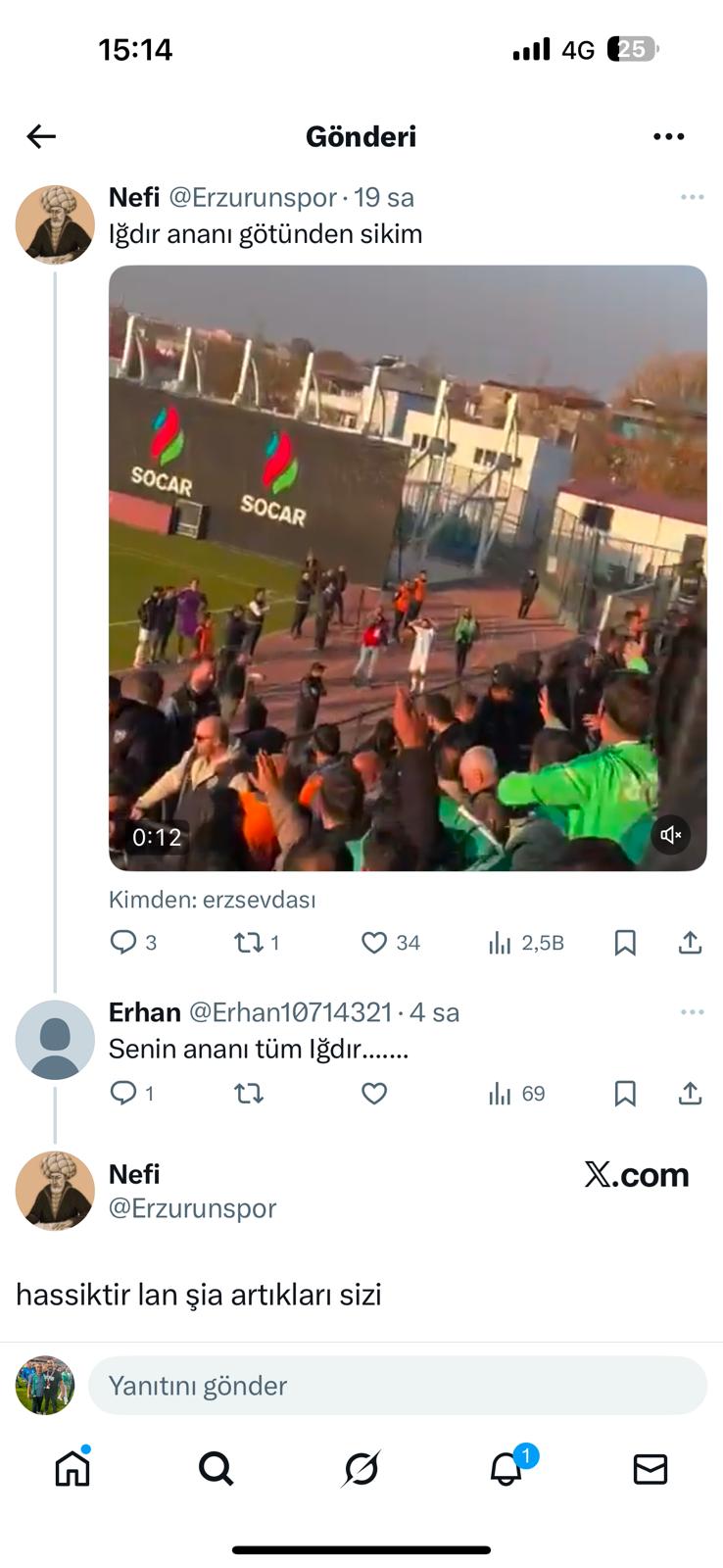 Erzurumspor’un bazı holigan grupları, Iğdırspor’un başarısını hazmedemeyerek Iğdır’ı hedef alan kışkırtıcı ifadeler kullandı.
