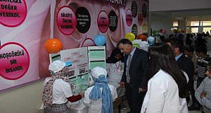 İmam Hatip Ortaokulu öğrencilerinin öğretmenlerinin danışmanlığında hazırladıkları birbirinden güzel ve ilginç projeleri Bilim Fuarında sergilendi. Proje sahibi öğrenciler, projelerinin yapılış amaçlarını ve çalışma sistemlerini uygulamalı olarak davetlilere anlattılar.