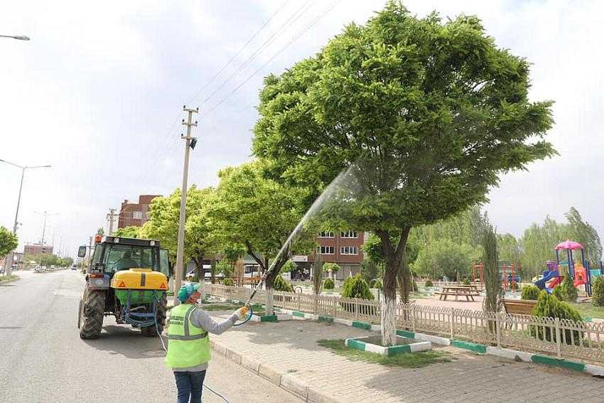Ayrıca park ve yeşil alanlarda olası ağaç ve bitki hastalıkları ile ağaçlarda oluşabilecek zararlı haşerelere karşı ilaçlama çalışmalarını kent genelinde aralıksız sürdürüyoruz".