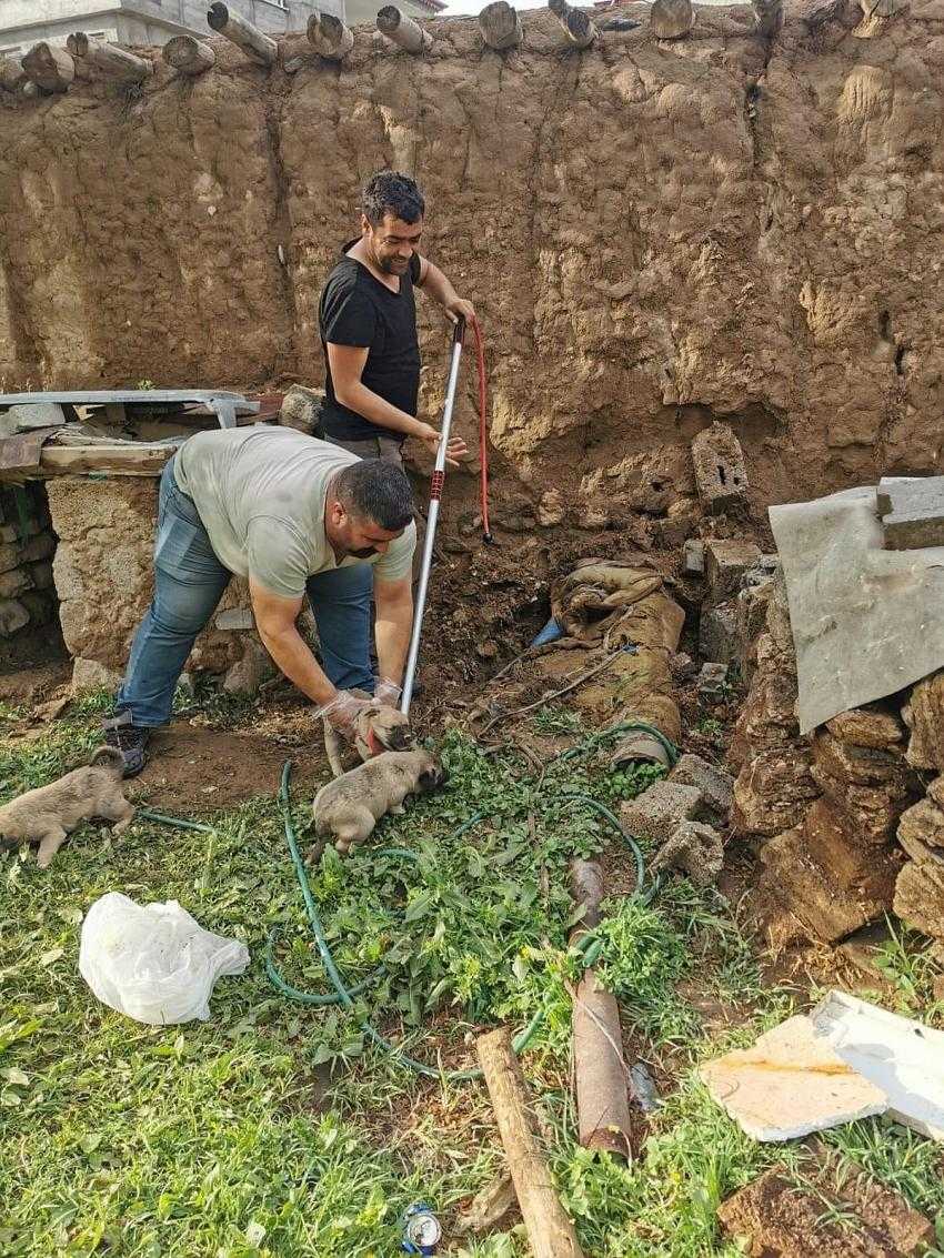 Yavru köpeklerin yağmur ve fırtınadan korunmak için sığınak ararken kuyuya düştükleri öğrenildi.