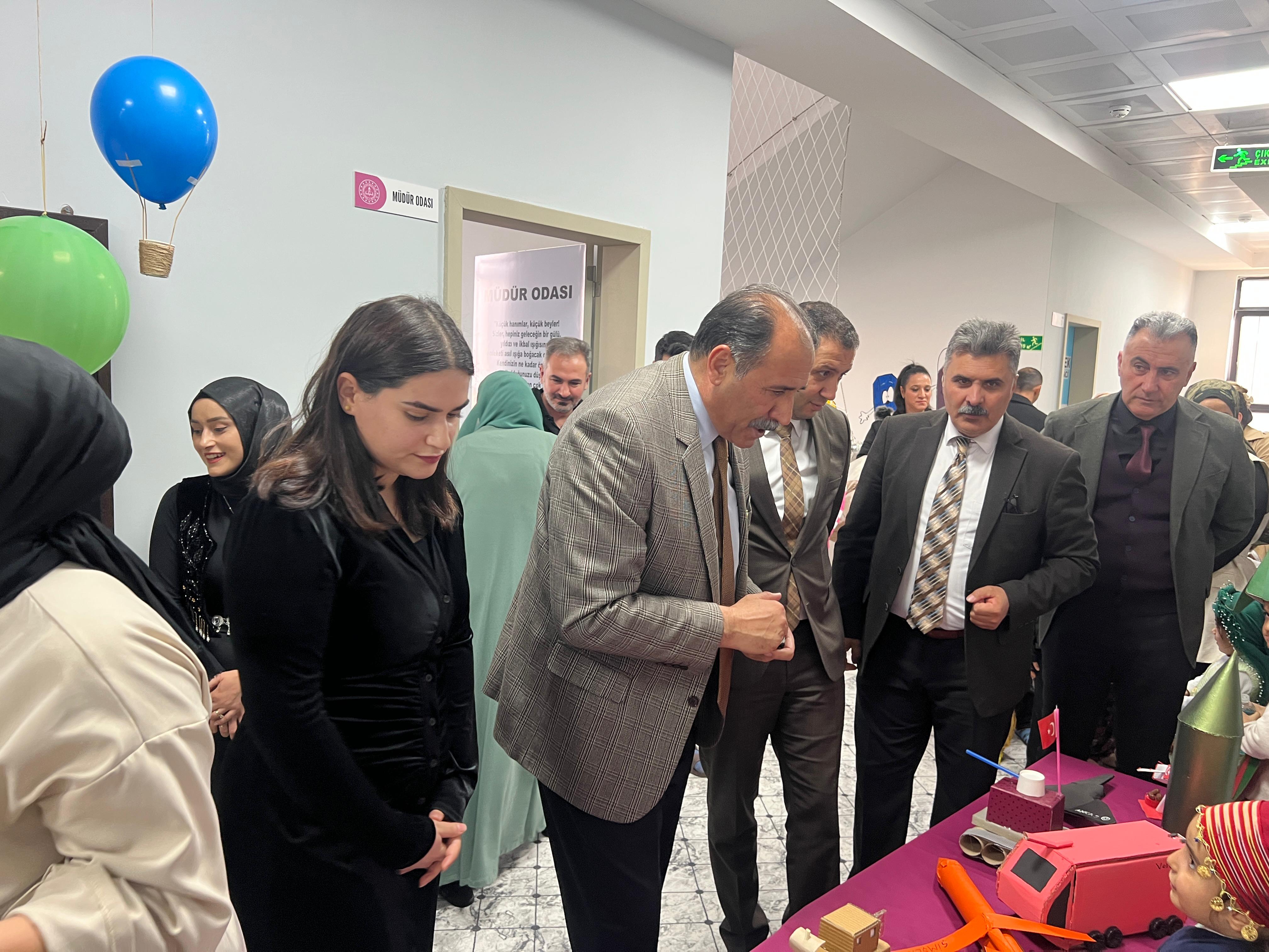 Şube müdürleri de sınıfları gezerek öğrencilerle yakından ilgilendi, çocukların hazırladığı ürünleri inceleyip öğretmenlerle sohbet etti. Samimi bir atmosferde gerçekleşen ziyaret, okul–aile–öğrenci iş birliğinin güzel bir örneği oldu.