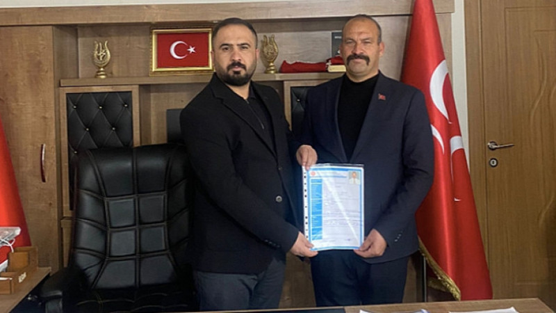 Muharrem Çeçen, MHP İl Başkanlığında İl Başkanı Hüseyin Ateş’e başvuru dilekçesini teslim etti.
