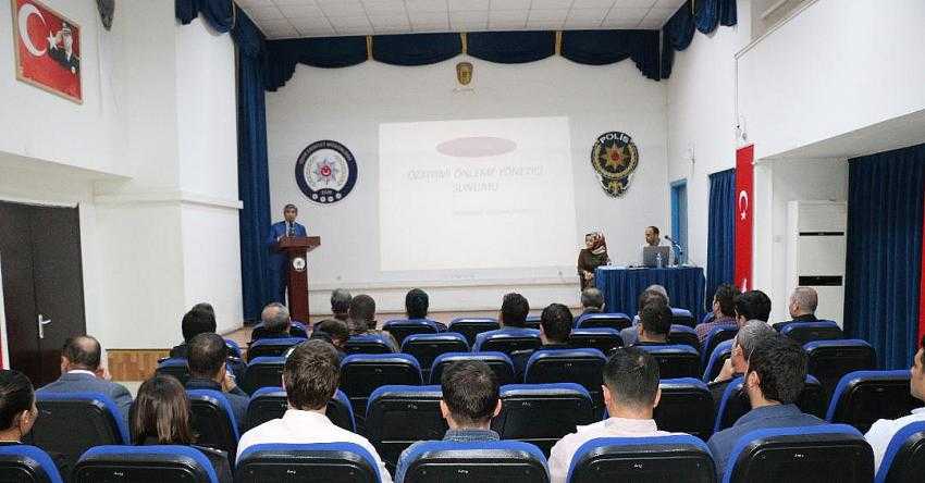 23.10.2019 tarihinde İl Emniyet Müdürümüz Sayın Hüseyin GÖLLÜCE, İl Emniyet Müdür Yardımcıları ve Birim Amirlerinin katılımlarıyla, Müdürlüğümüz Rehberlik ve Psikolojik Danışma Büro Amirliğinde görevli Psikolog Memnune ÖZBEN tarafından Özkıyımı Önleme Eğitimi verilmiştir.
