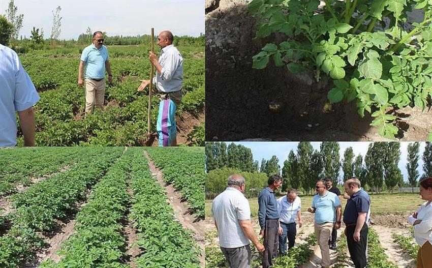 Hasadına 1 aydan kısa bir süre kalmış olan patateslerin oluşmaya başladığı görüldü.Melekli Beldesinde Sahip COŞAR, Aralık İlçesinde Hüdaverdi KILIÇ ile Veli BAYAT'ın tarlalarında İl Müdürü Özkan YOLCU yetiştirici çiftçilerimizle istişarelerde bulunarak, kolaylıklar ve bereketli olsun dileklerinde bulundular.Sertifikalı tohumlarla 33 dekarlık alanda bu yıl ekimi yaptırılan patates Iğdır’da turfanda üretim için önemli bir ürün olacaktır.