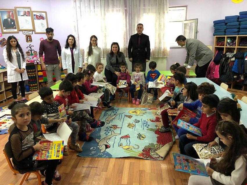 Öğretmenlerden sınıfta yapılan etkinlikler hakkında bilgi alan Hanımefendi, anaokulu öğrencilerimize çeşitli hediyeler vererek onları sevindirdi.