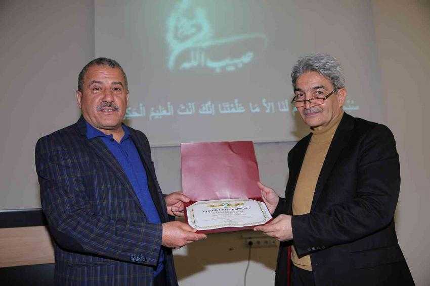 Soru cevap şeklinde devam eden konferans İlahiyat Fakültesi Öğretim Üyesi Prof. Dr. Şadi Eren’in Prof. Dr. Mustafa Uçar’a teşekkür belgesi vermesiyle son buldu.