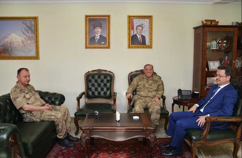 Erzurum Jandarma Bölge Komutanı Tümgeneral Ahmet Hacıoğlu, Iğdır Valisi Sn. Enver Ünlü'yü makamında ziyaret etti.