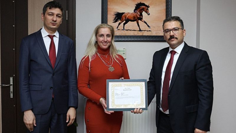 Kurumda yürütülen çalışmalar hakkında bilgi alan Vali Ercan Turan, özverili çalışmaları ve üstün gayretlerinden dolayı SGK İl Müdürü Birsen Dursun'a başarı belgesi takdim etti.