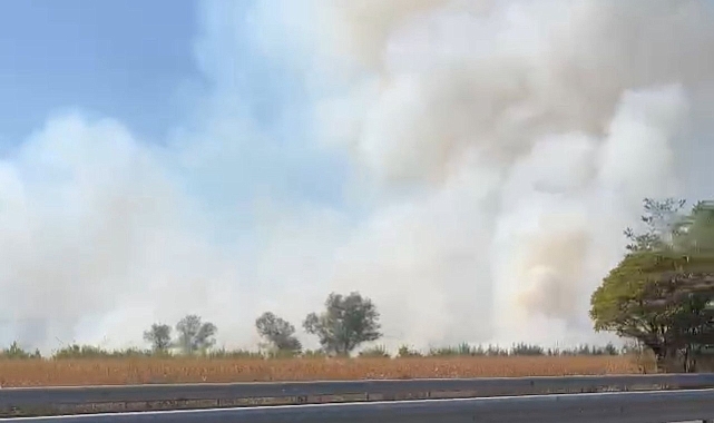 tarla ve arazilere sıçradı. İlk olarak birkaç dönümlük alanda başlayan yangın,