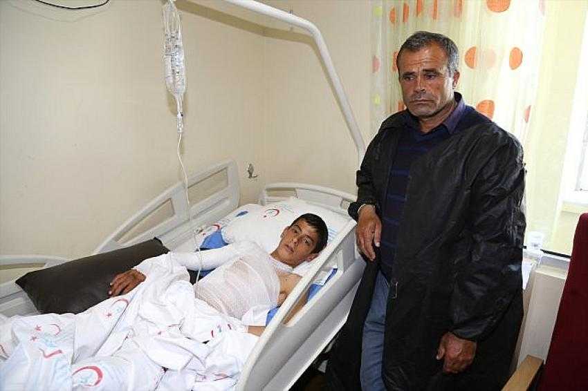 Engebeli arazide hayvanların otladığı esnada Yusuf Akdemir, elindeki sopayı yüksek gerilim hattına temas ettirince akıma kapılarak yaralandı.