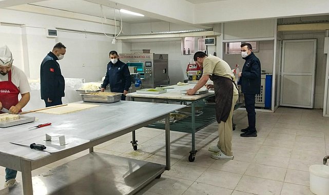 Erzincan'da zabıta ekipleri, Ramazan Bayramı öncesi tatlı ve börek üretimi yapan işletmeleri denetledi.